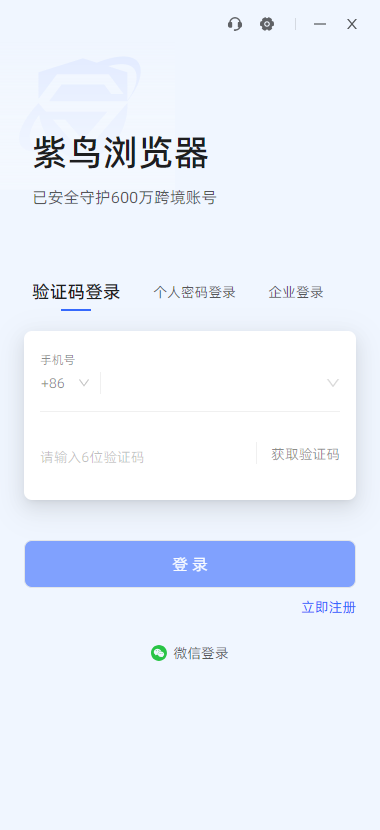 第4步,安装好紫鸟浏览器客户端,用刚注册的手机验证码登入紫鸟浏览器后台。