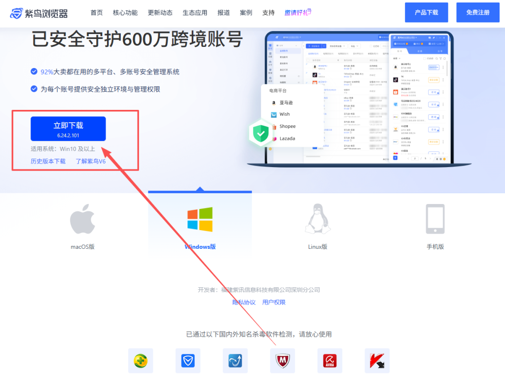 第1步,打开紫鸟浏览器官网https://www.ziniao.com/?from=9831