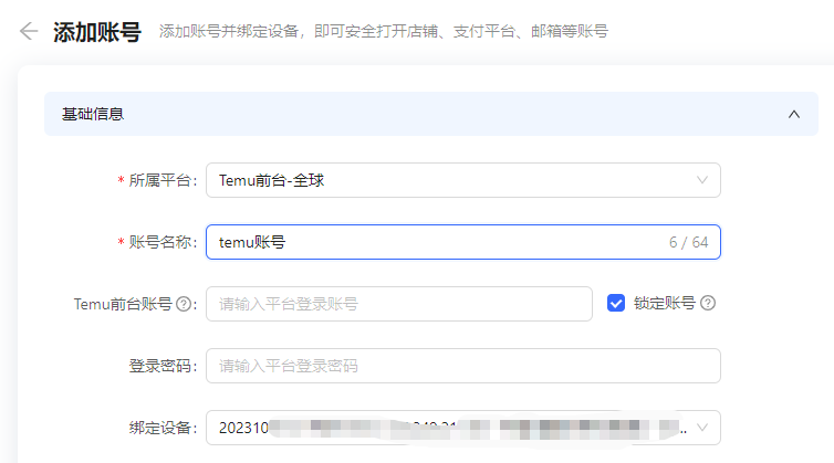 第6步,绑定temu前端网址,只需填这三项,账号名称可以随便取一个名字。