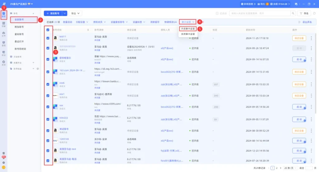 1. 按账号监管(模式1):监管指定店铺账号的所有成员操作,适配“核心店铺重点保护”场景,确保所有操作店铺的成员行为均被记录;