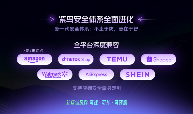紫鸟安全管家安全体系全面升级,新增针对亚马逊平台的5大高风险操作告警,覆盖价格误操作、库存误弃置、首款敏感操作、折扣叠加风险、账号权限变更等场景,实现更主动的防御。原先的资产安全防护主要聚焦亚马逊,现已拓展至7大平台:亚马逊、TikTok、Temu、Shopee、沃尔玛、速卖通、Shein。这意味着跨平台运营的卖家可以在紫鸟安全管家统一管理所有店铺的敏感操作,享受一致的安全防护。